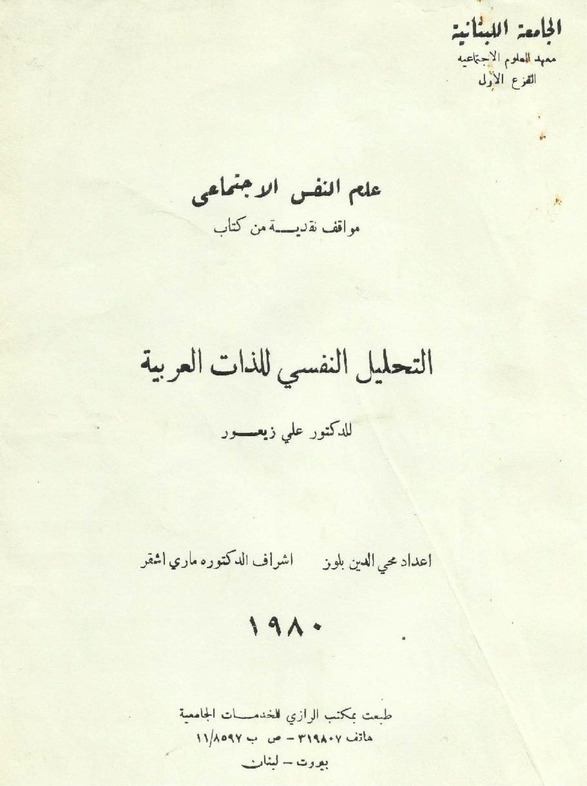 غلاف رسالة ماجستير عن الجزء الأول من “موسَّعة التحليل النفسي”